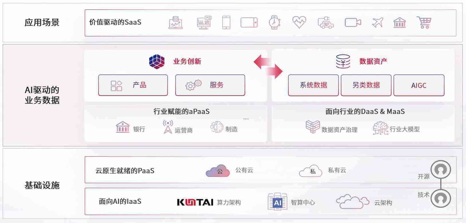 数字时代,,围绕企业数字化转型的关键要素,,,,365钱包数码开创性的提出数云融合战略和技术体系框架,,着力在云原生、、、数字原生、、AI原生和信创产业上架构产品和服务能力,,,,为处在不同数字化转型阶段的快消零售、、、汽车、、金融、、、医疗、、政企、、、、教育、、、运营商等行业客户提供泛在的敏捷IT能力和融合的数据驱动能力,,,构建跨界融合创新的数字业务场景和新业务模式,,,助力企业级客户建立面向未来的核心能力和竞争优势,,,全面推动社会的数字化、、、、智能化转型升级。。。